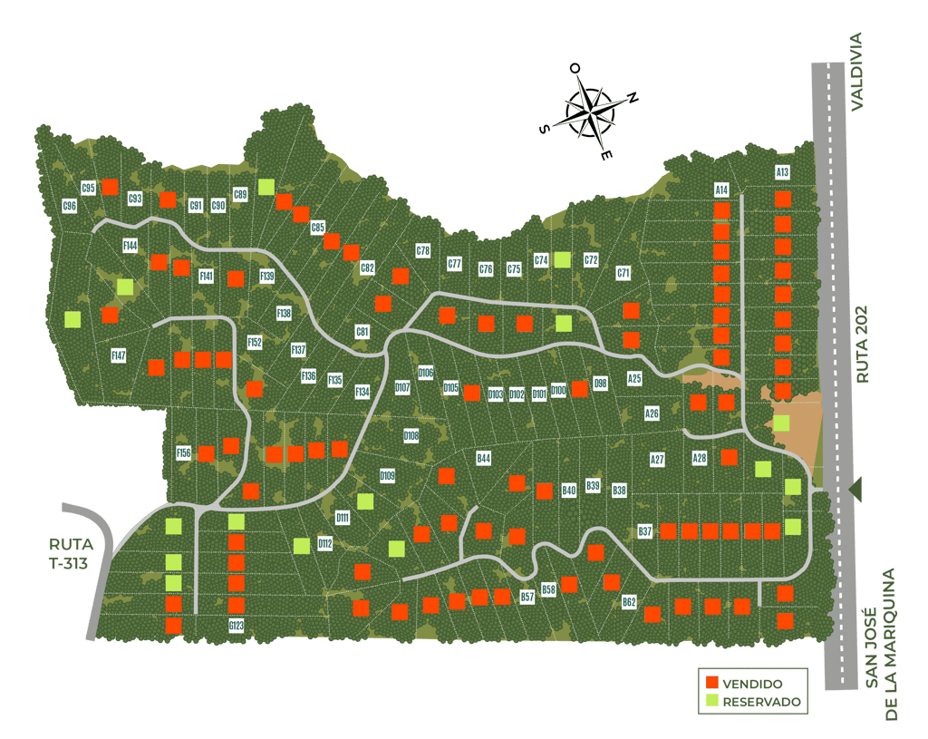 Parcelas con amplios espacios naturales, vistas panorámicas, flora silvestre y rodeadas de bosque nativo.